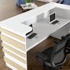 Reception Desks are perfect for use in waiting areas, lobbies, reception areas and hallways. Our reception desks offer high quality laminate surfaces with a variety of colors as well as melamine tops, drawer fronts, and shelves available in a wide range of colors. With its modern styling and large capacity, your office will be more efficient and user-friendly.
